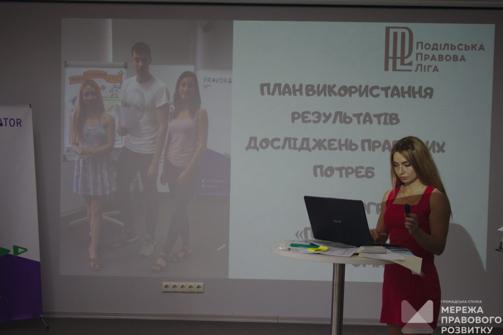 Модератором заходу виступав Виконавчий директор Мережі правового розвитку Євген Полтенко. Програма практикуму була дуже насиченою. Спочатку учасники ініціативних груп презентували попередні результати своїх досліджень, які тривали впродовж літа.