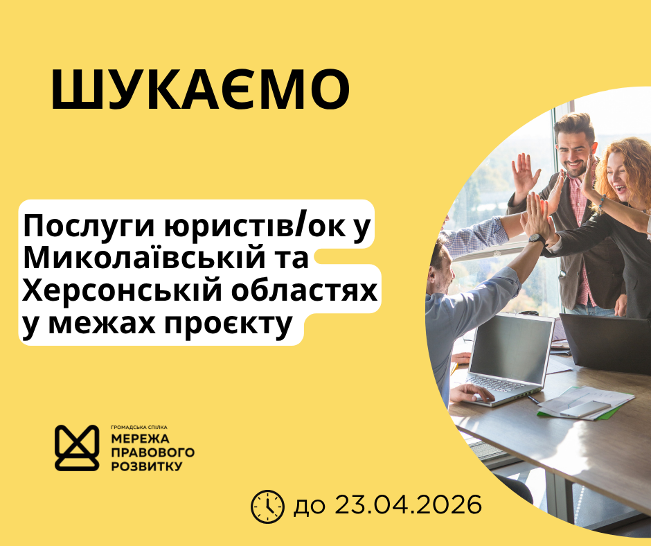 - Вивчення правових потреб мешканців громад Миколаївської чи Херсонської областей.