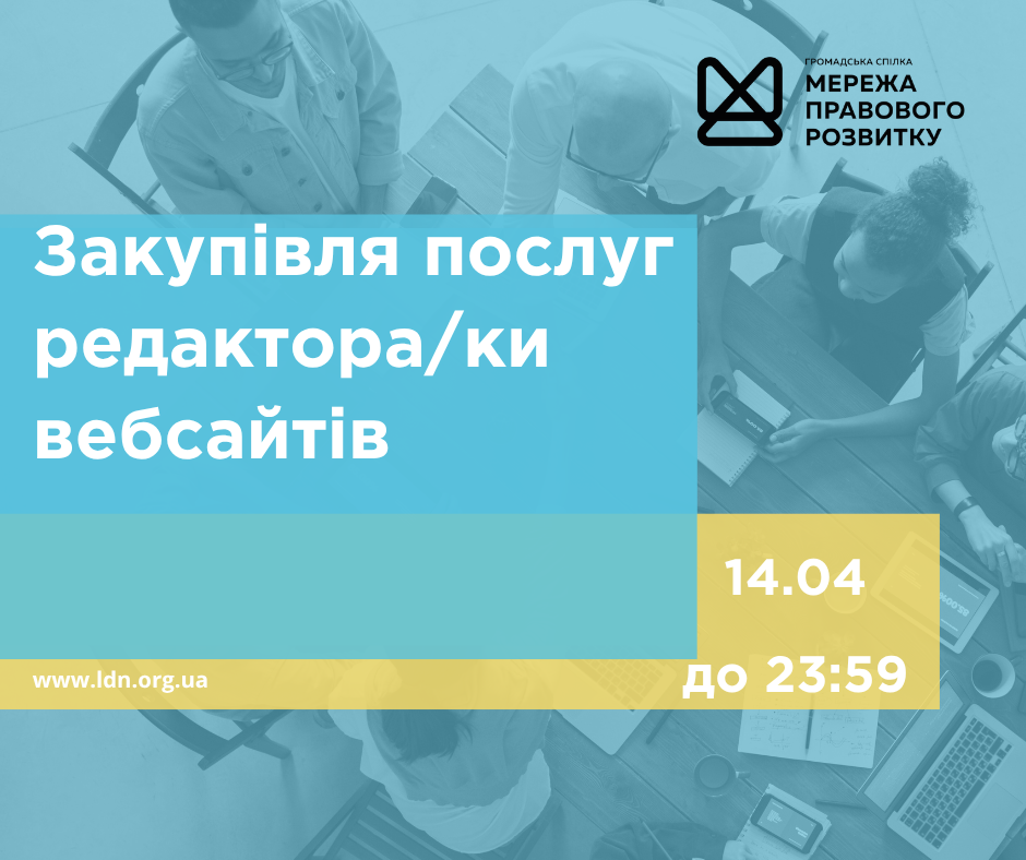 У зв’язку із розширенням впроваджуваних ініціатив МПР запрошує підрядників послуг подати цінову пропозицію на закупівлю послуг редактора/ки вебсайтів. Редактор/ка вебсайтів забезпечуватиме оперативне та якісне розміщення, редагування й оновлення інформаційних матеріалів на сайтах link.ldn.org.ua, ldn.org.ua, а також зовнішніх ресурсах prostir, gurt відповідно до комунікаційних цілей організації.