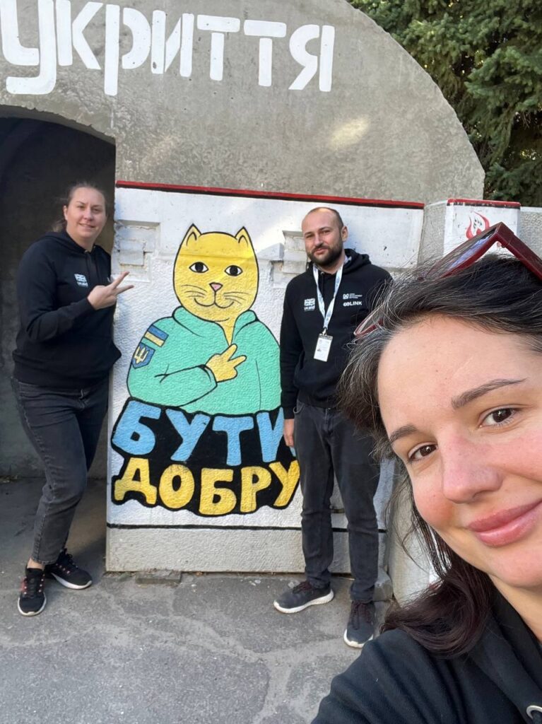 Справа наліво: Спеціалістка зі збору даних у Херсонській області Анна Литвинюк, координатор команди гуманітарного реагування у Херсонській області Олександр Гончар, спеціалістка зі збору даних у Херсонській області Катерина Майборода (м. Херсон). Вересень 2025