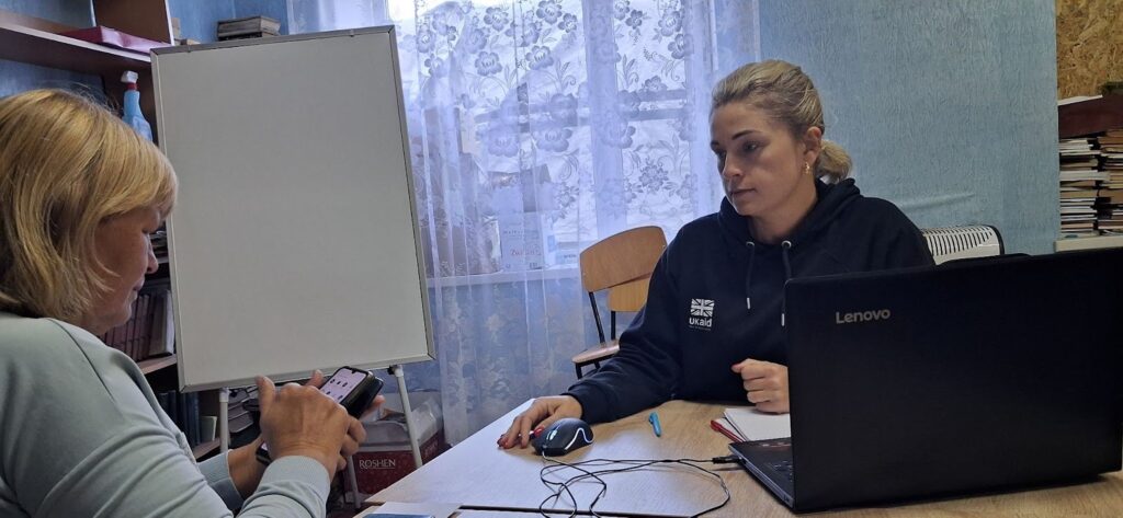 Зліва на фото — координаторка команди гуманітарного реагування в Херсонській області Юлія Стадник. Травень 2025
