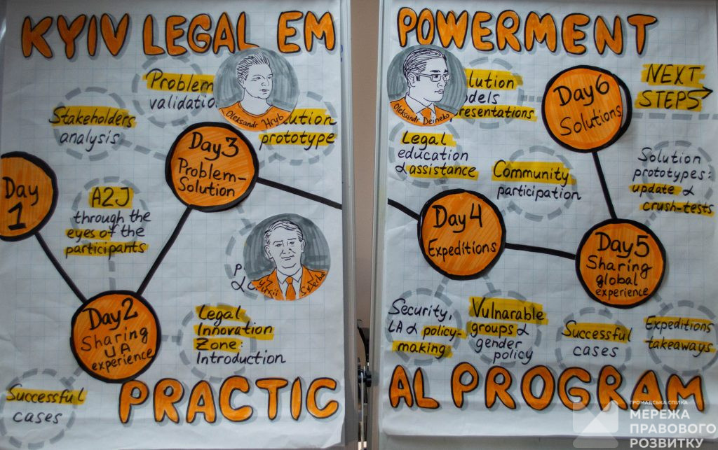 Також, в перший день виконавчий директор Мережі правового розвитку Євген Полтенко та координаторка проектів та програм Української фундації правової допомоги Катерина Єрошенко провели візуальну екскурсію по плану програми та розповіли що саме буде відбуватись протягом майбутніх п’яти днів.